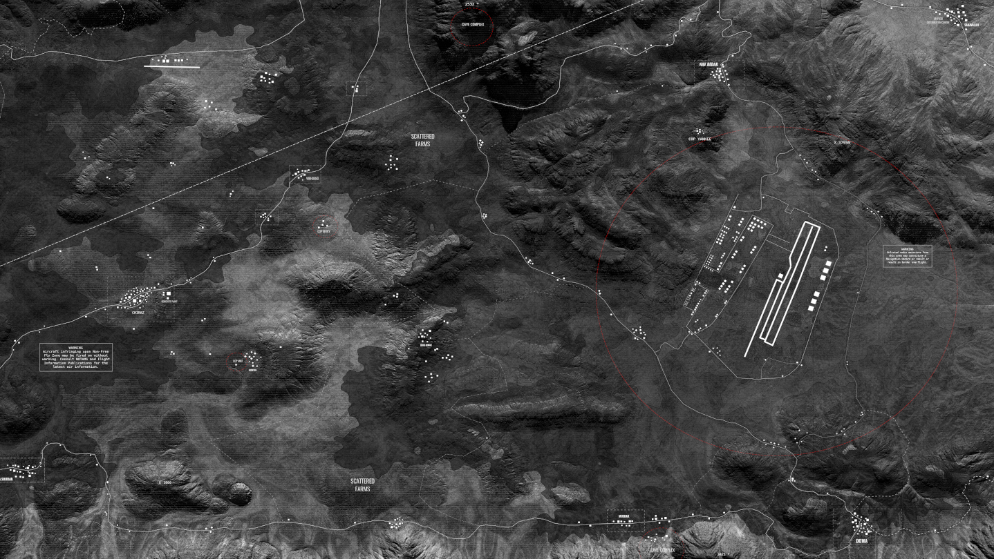 The game environment is over 1000 km²; full of unique locations, natural landmarks, villages, towns, coalition bases, and outposts reflecting the Afghan landscape and conflict.