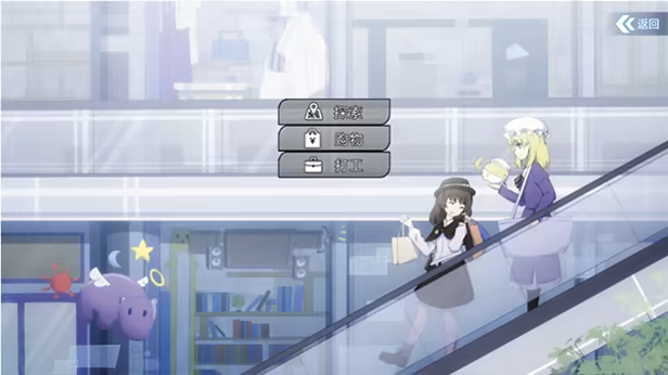 游戏地图是秘封旅行功能的实现场所,在这里你可以进行打工、娱乐、购物,以及对话探索。