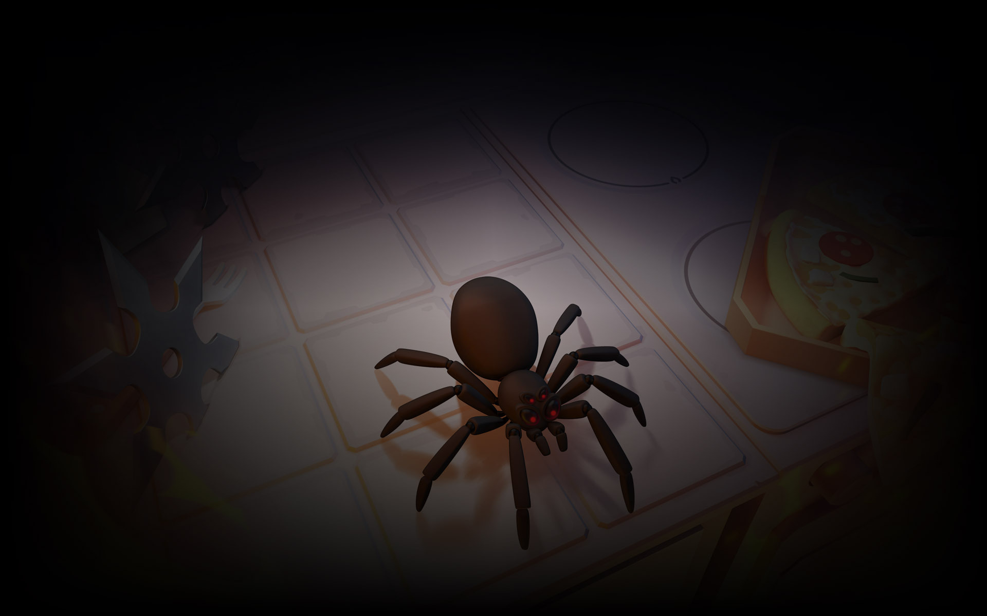 To defeat spiders you must exploit their one weakness: FIRE. Or bullets. Or explosions, throwing stars, gettin’ smushed by stuff...pretty much anything, really. But that doesn’t mean it’ll be easy - first you’ve gotta find the spiders. Use state-of-the-art arachnid tracking technology to pinpoint your target's location among hundreds of potential hiding spots - then, torch everything and smash the spider with a frying pan after it runs out. It’s the only way to be sure.