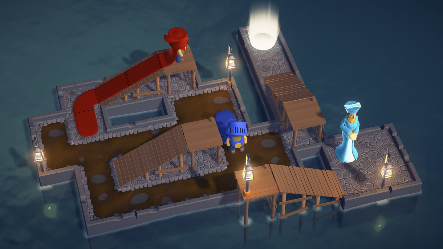 As the player, you will coordinate the movement of both the Knights and their less mud-resistant superiors with the goal of escorting them to their designated exit. To achieve this noble purpose, no sacrifice is too great: capes will tear and heads will be stepped on. However, it is your head that will be doing most of the heavy lifting in these puddle puzzles!