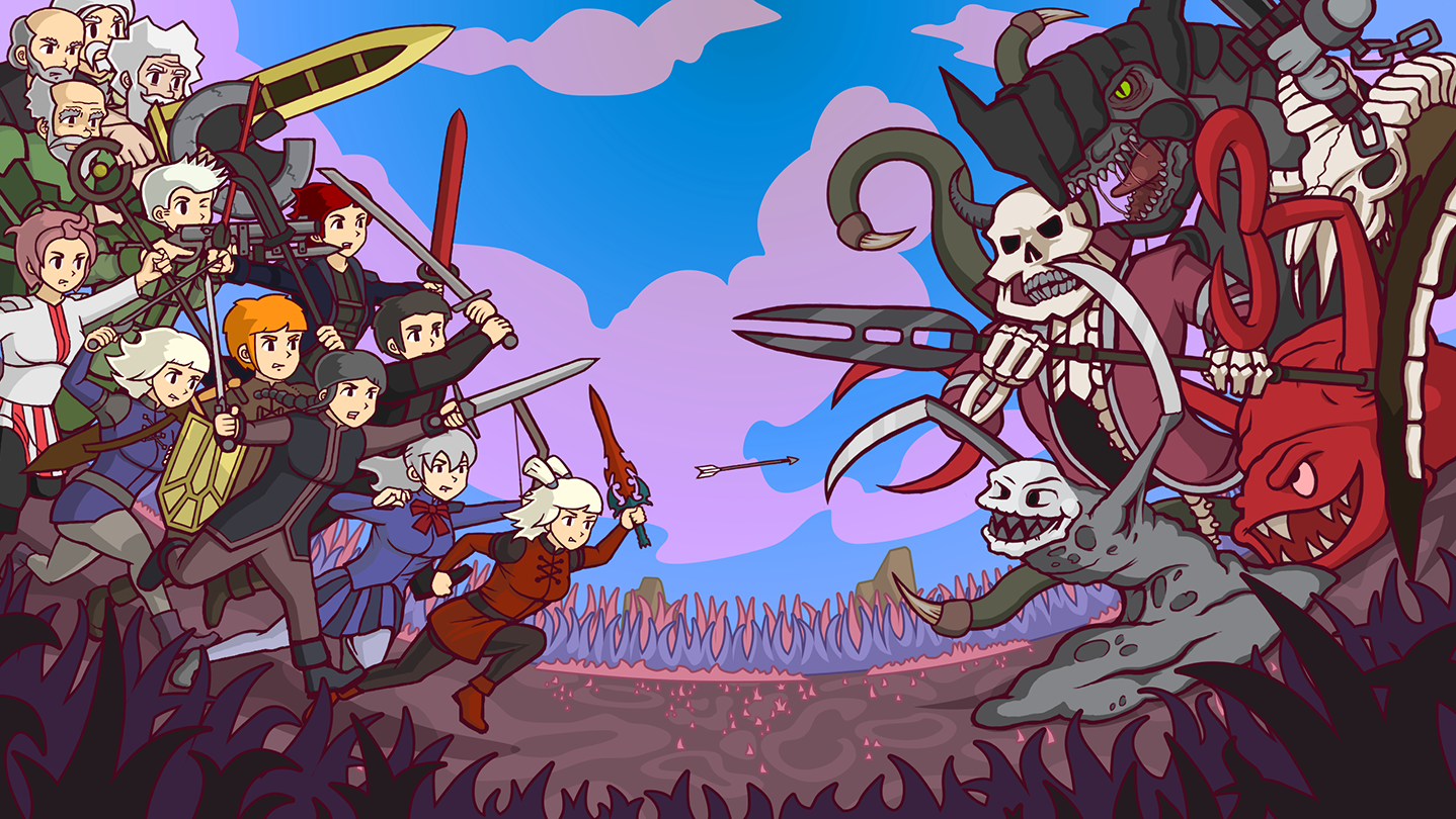 Build a party of heroes, fight off hordes of monsters, use resources to craft powerful new equipment, then fight stronger monsters or battle other players' parties in the arena!