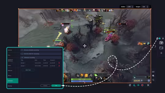 Capture any activity from your desktop: live streaming, Skype calls, or program usage. Record comments with the mic or capture them on webcam. The Scheduler mode helps you record TV series, webinars, or football games – create multiple recording tasks and the program will record the screen whenever you need. You can send your computer to sleep or turn it off after the recording.