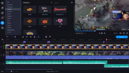 Use your creativity to make the most engaging vlog ever – with this software, you have everything you need to make it happen. Use the media bin to store photos, videos, and music. Review your files before adding them to your project and delete the ones you don’t need. Add pictures, videos, and music on a convenient multi-track timeline and don’t worry about oversized files – the program perfectly works with even Full HD and 4K. Trim, rotate and enhance clips, use special effects like Chroma Key, Pan and Zoom, and Object Animation, add stickers and titles. Make your own animated intro with the help of ready-made presets or use backgrounds, titles, stickers, and even music from the program.