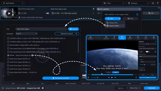 • Online subtitle search: search for movie and TV series subtitles right from the program