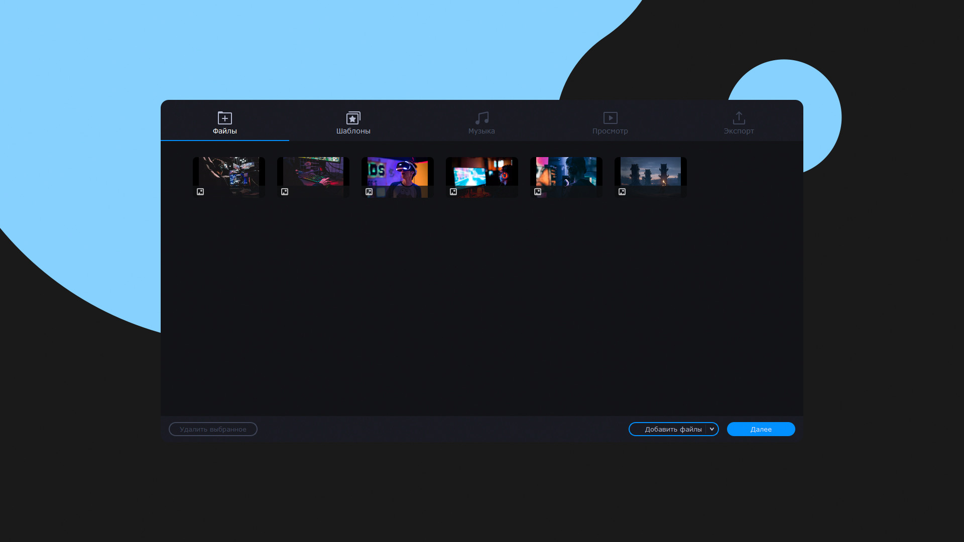 • Попробуйте монтаж в Мастере клипов: загрузите файлы, а программа соединит их в готовый клип
