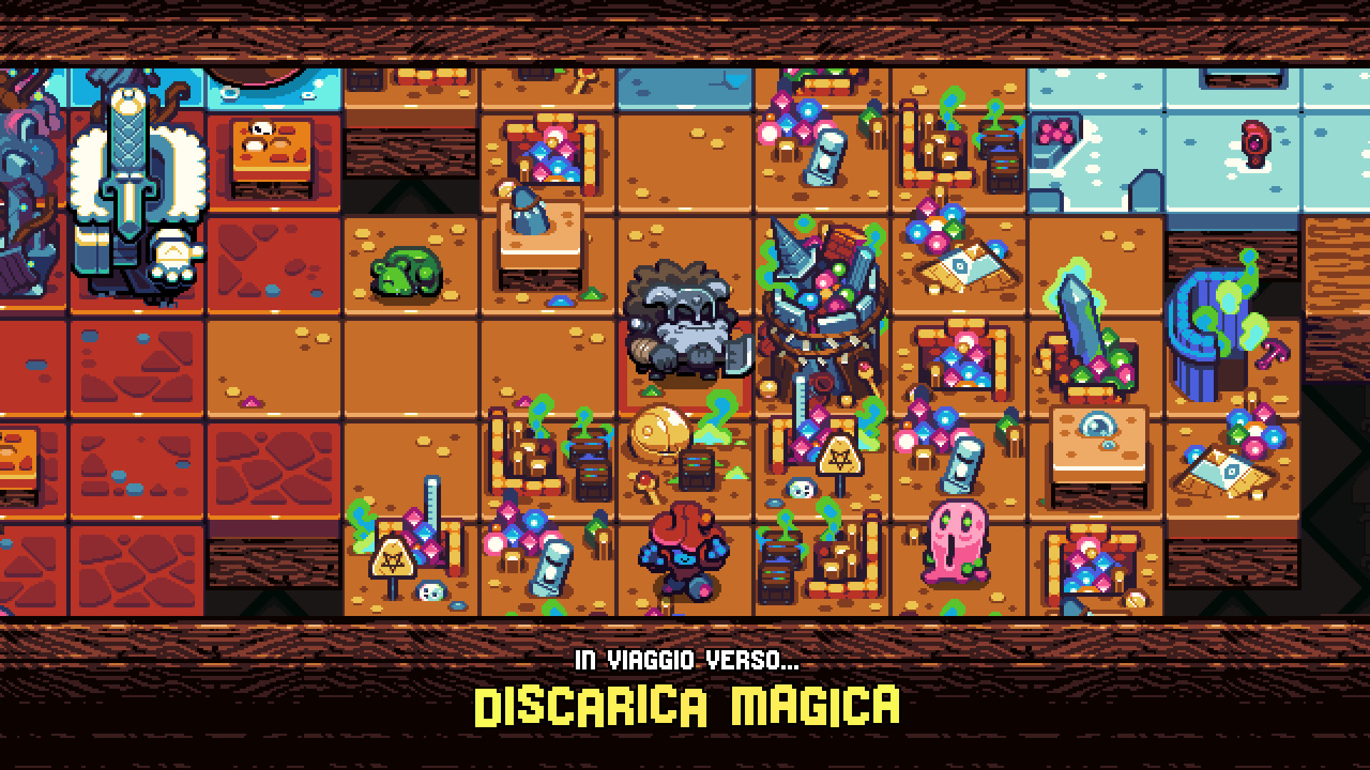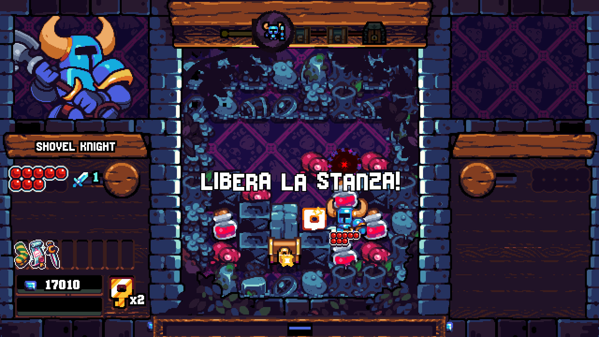 - Un nuovissimo stile grafico arricchisce una nuova storia. Impara i fondamenti dal tuo amico Puzzle Knight mentre cerchi di fuggire dalla misteriosa Pocket Dungeon. E goditi lo stile di narrazione e l'immancabile umorismo che caratterizzano Shovel Knight!