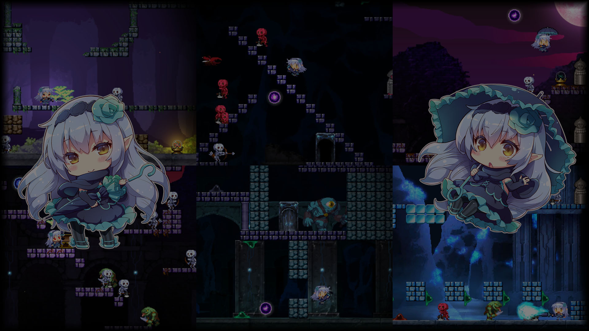 It is cute but extremely hard!!! The immortal girl keeps to be reborn any number of times even if she gets beaten. It is an action game that includes puzzle-like elements by learning the movement and timing of the enemies.