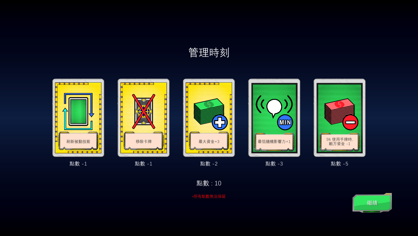 • 動態構建的牌組: 明智選擇你的卡牌獎勵! 從過百張卡中組合你的卡組, 以面對你前面的障礙. 適當的取捨才能讓你達到商界的巔峰.
