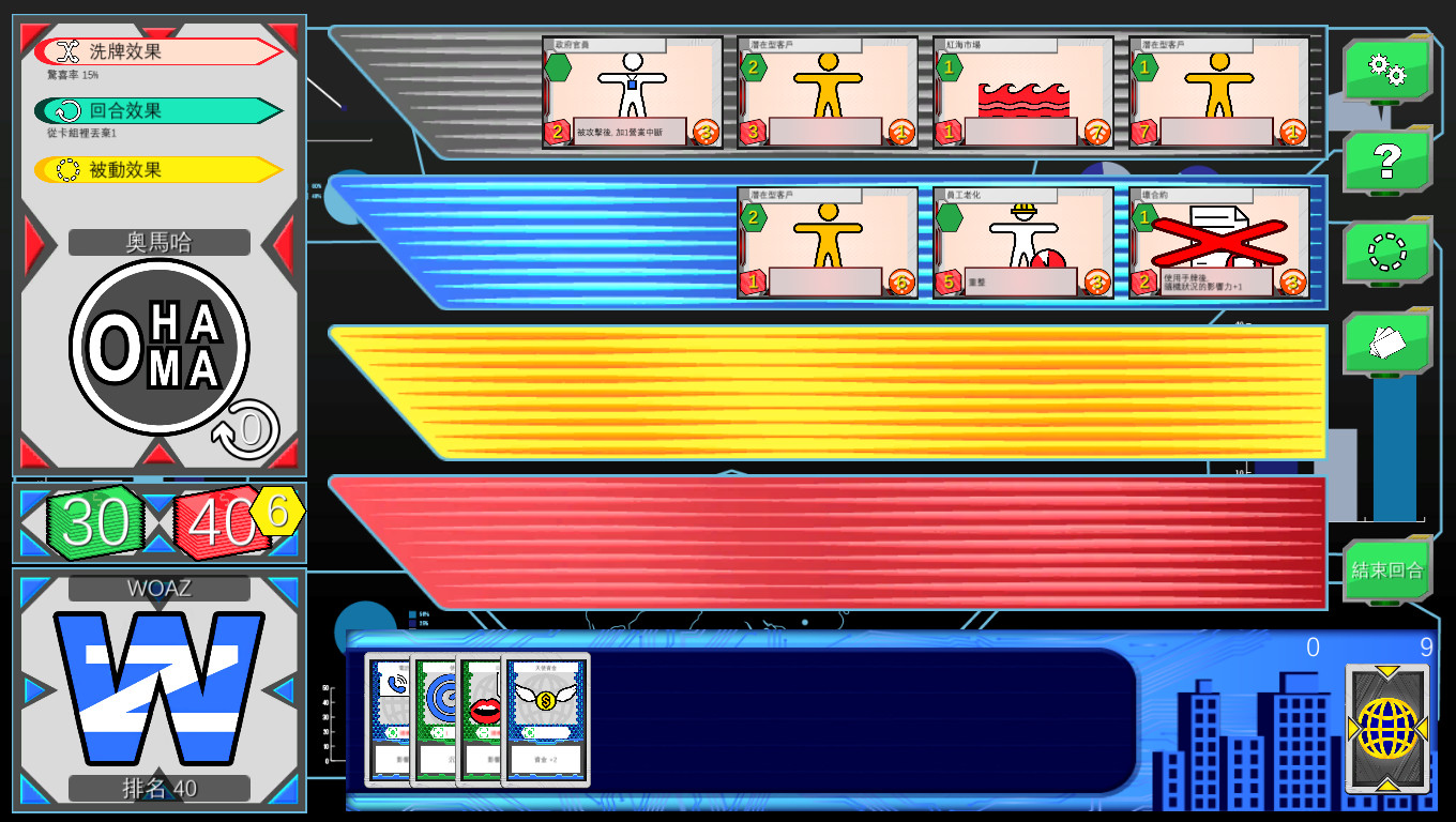 商戰是一個組合高難度策略和商業理論的卡牌遊戲. 用你獨特的卡組面對商界的問題與狀況, 使用所有可行的策略, 然後成為商界第1的首席執行官!