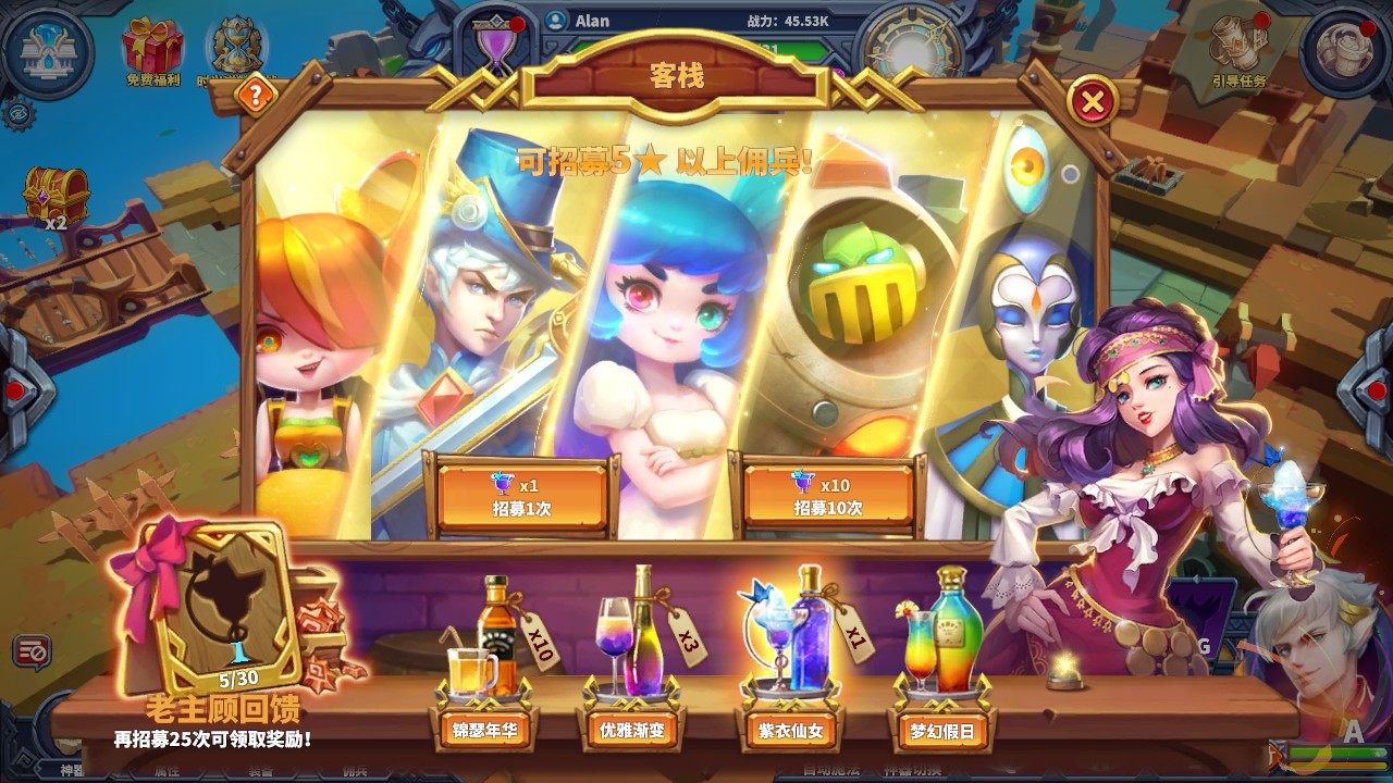 客栈老板娘特供大量饮料,用于召唤强力佣兵!