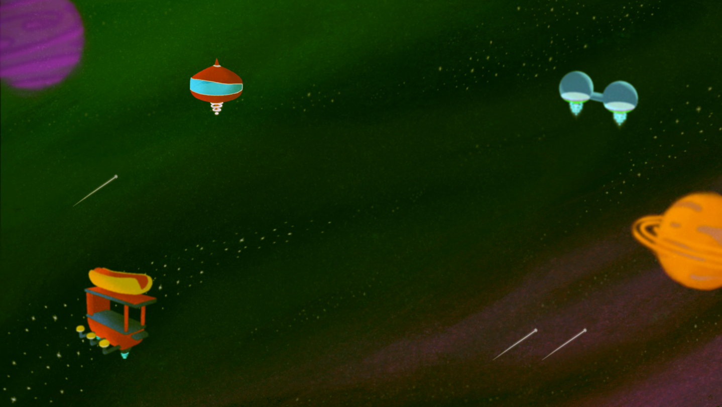 • Lots of space stations, homes, offices, stores, and space-food-carts!
