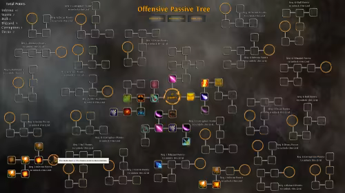 When you level up you gain a point to be spent in the Passive Trees. The Passive Trees have nodes for every pretty much every Stat in the game and are split up into 3 separate trees. You can allocate points anywhere but must follow the paths and Cluster point requirements. At the end of each Cluster is a Keystone which has a dramatic effect, such as "on hit", or "on damage taken".
