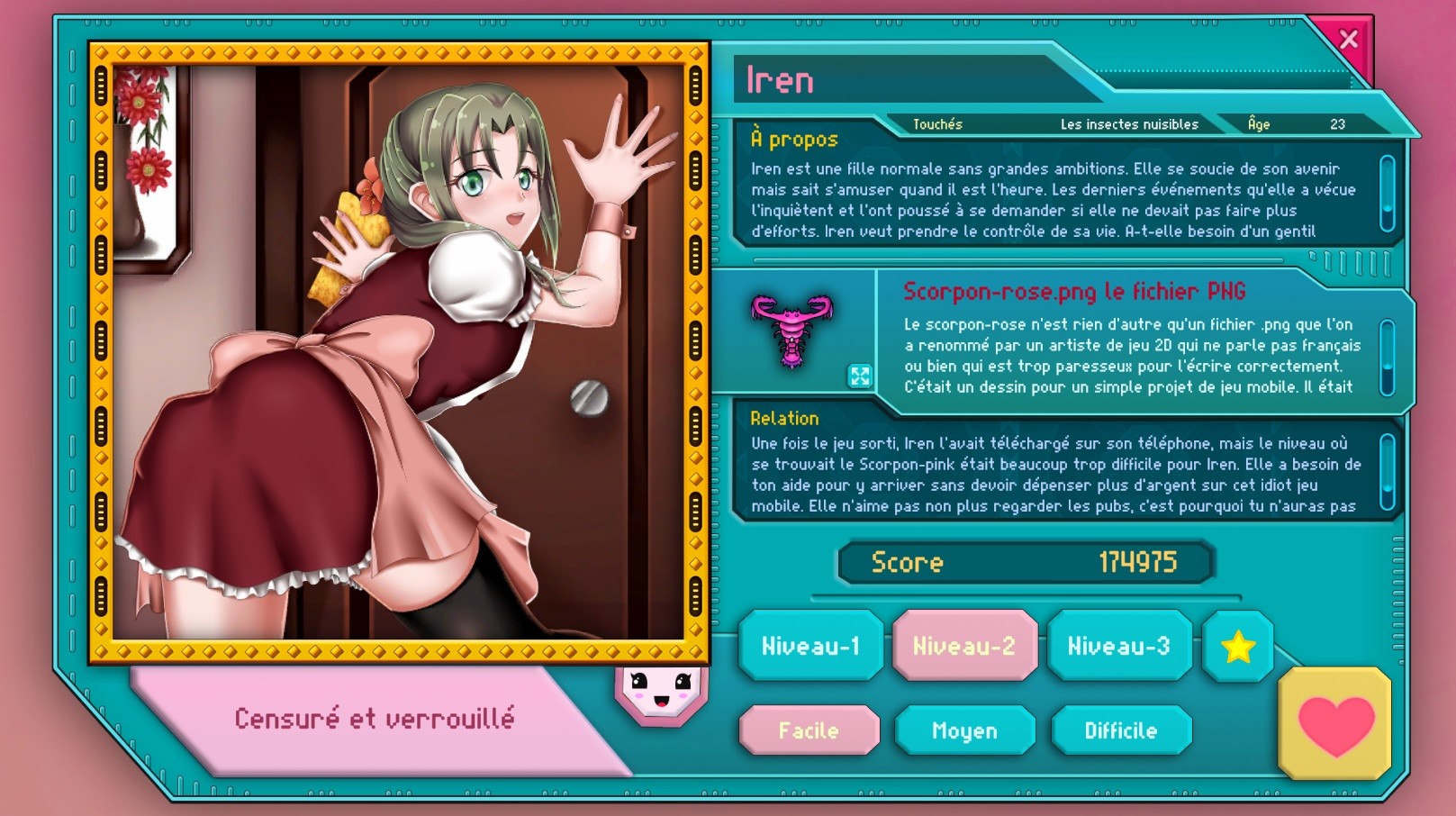 Vous voyez la photo de la fille associée et pouvez soit continuer son histoire, soit débloquer la fille suivante.