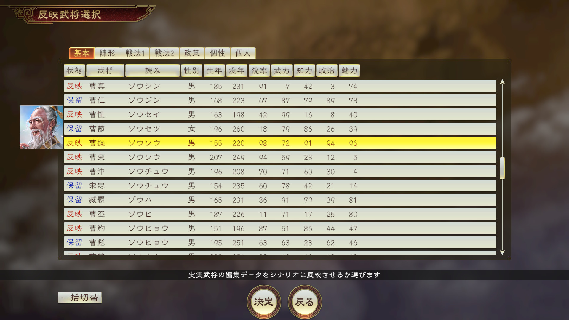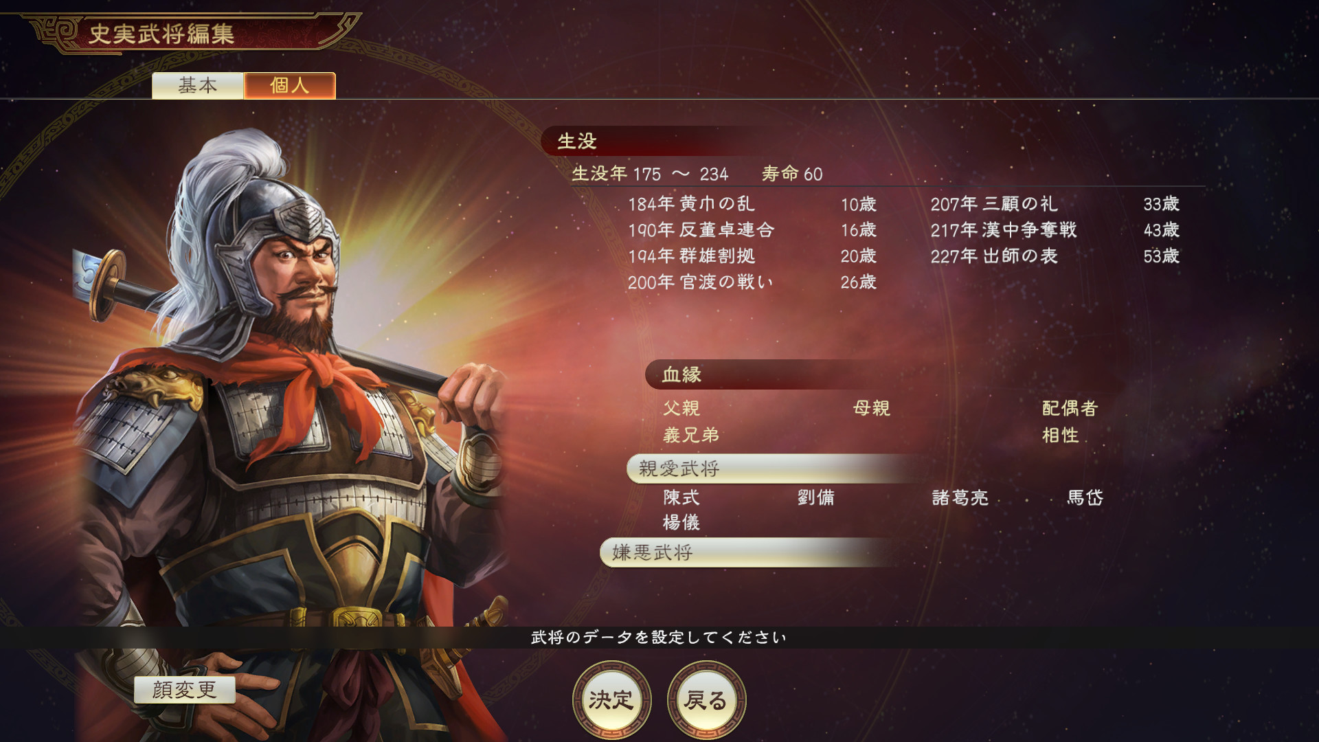 ※編集した史実武将をシナリオに反映させると、トロフィーが獲得できなくなります