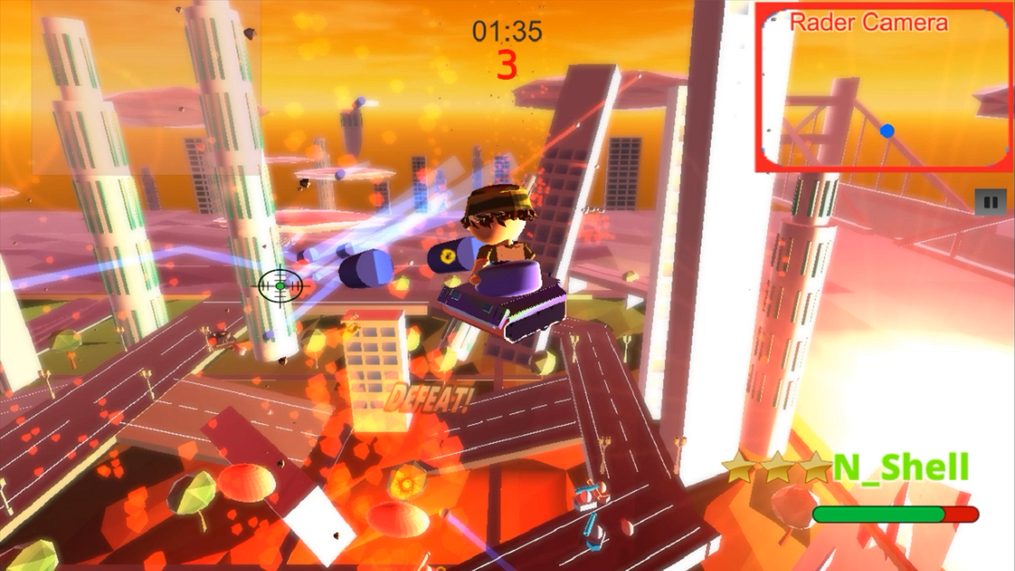 Fly Fly Tank is Chaotic Tank-Based Third Person Shooter Action Game! The purpose is to move around 3D Stage and defeat certain number of Enemies. By accumulating Scores, you can Level Up Weapons and By defeating Boss, you can use Boss's Weapon. Super easy operation with only arrow keys and mouse!