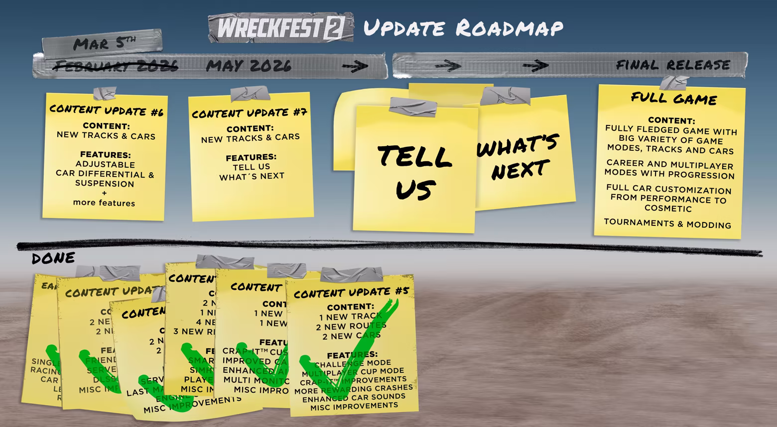 Upcoming content for Wreckfest 2 during its Early Access phase and leading into the 1.0 release