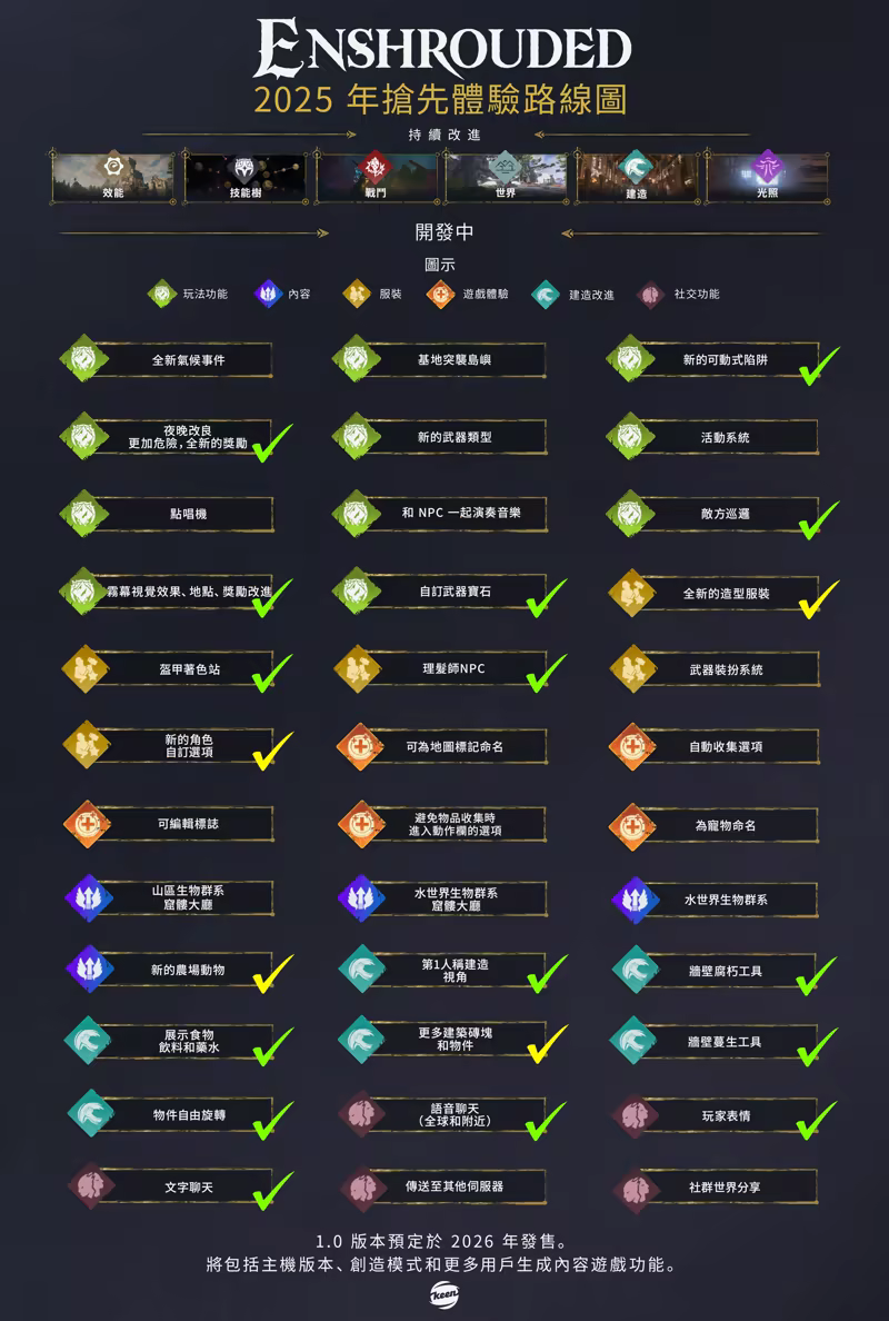 請查看我們的開發路線圖,以及我們在搶先體驗期間實裝的內容