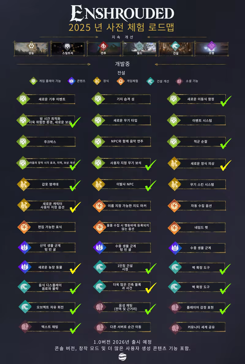로드맵과 얼리엑세스 시작부터 지금까지 통합된 내용을 확인하세요.