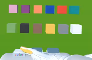 Before creating a block you can choose a color or later you can repaint the parts using the tool on your left hand finger. All basic colors plus translucent material are available.