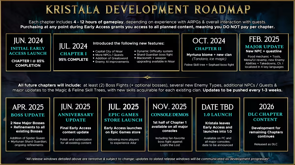 “Kristala will remain in Early Access for approximately 18 months, though timing may shift based on player feedback and development progress. During this time, the game will be released in Chapters.