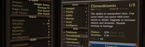 Weapons alone will not be enough to defeat the Jötunn and his armies. Visit the Skill Master to upgrade your stats and skills and the Armorer to equip yourself with better armor. Be strategic and build your ideal character build to suit your unique playstyle.