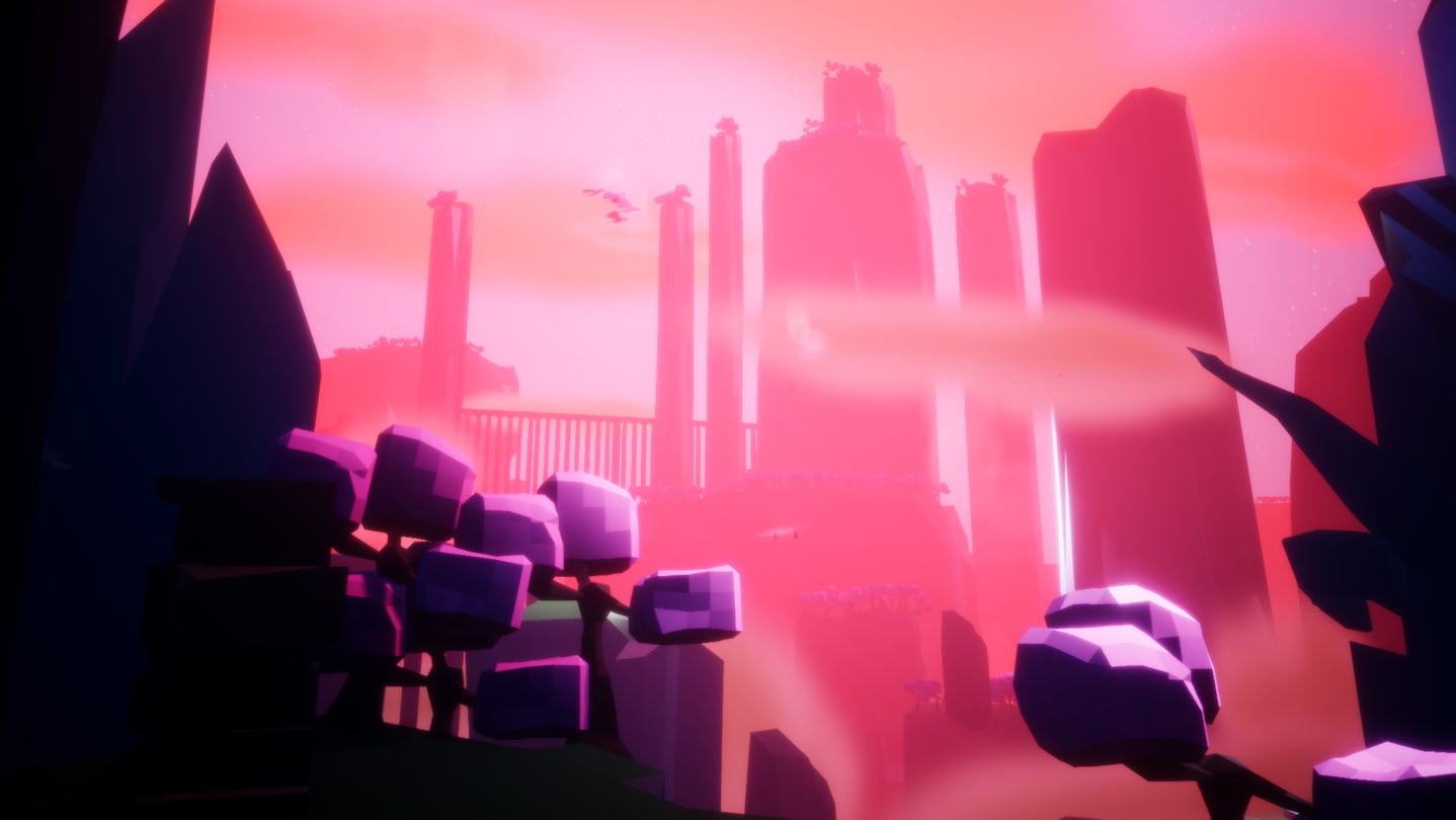 Players will traverse dense forests, enormous spires, and ancient ruins set against a colorful low poly aesthetic. Many secrets and paths lay hidden for players to uncover the lore and upgrades to your arsenal.