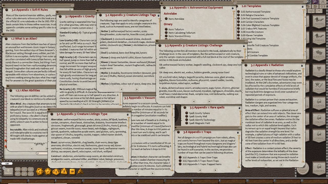system, creature indices by type and CR, high-tech traps and hazards, and spells, feats, and expanded rules for aetherite radiation, vacuum, and more! The book is packed with incredible artwork and delightful design by some of the best authors in the business. These monsters are dynamic and cinematic in how they play at the table, with ecology, history, and lore that are a pleasure to read.