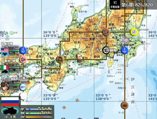 速度や燃料(航続距離)が低い兵器が混じっていると、部隊全体の足を引っ張るので気をつけよう。上の画像のような組み合わせだと、人目は引いても、戦力にはならないぞ。