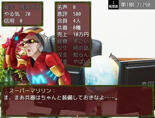 不謹慎バカゲーとは聞いていたが予想を45°はあらゆる意味で上回るゲームだった。そもそも所持金がほとんどの状況において????だし収支の正確な金額が不明なのは相当やっている。話の面はゲラゲラ笑えるがいざ戦闘となると機体や隊員を変えるだけで性能が変わるため勝てない相手への工夫のし甲斐はかなりあって楽しいゲームだと思った。