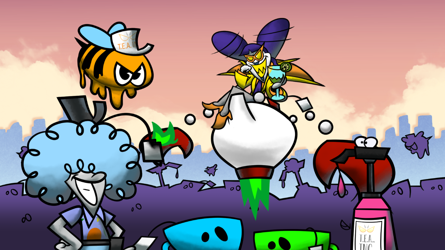 Take the role of Mornin’ Jo and D’Caff, the spunkiest queer mixologists in Suburb City, as they chase down the bitter CEO of T.E.A. Incorporated, and take down her lackeys along the way!