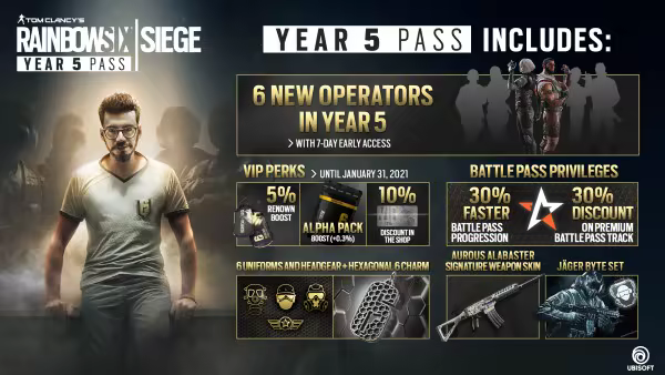 Notice: Tom Clancy's Rainbow Six® Siege - Year 5 Pass is no longer available on the Steam store.