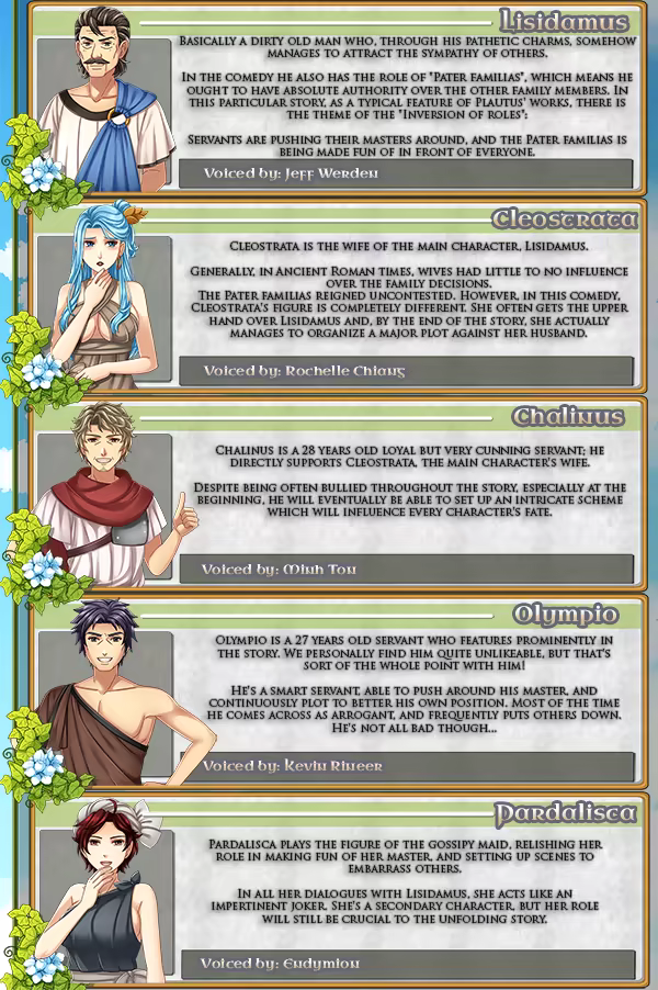 Want a good laugh? Well, in 184 BC Plautus wrote a play you will not easily forget! "Casina: the Forgotten Comedy" is a modern adaptation of his ancient work of literature, brought to you as a fully voiced and animated Visual Novel.