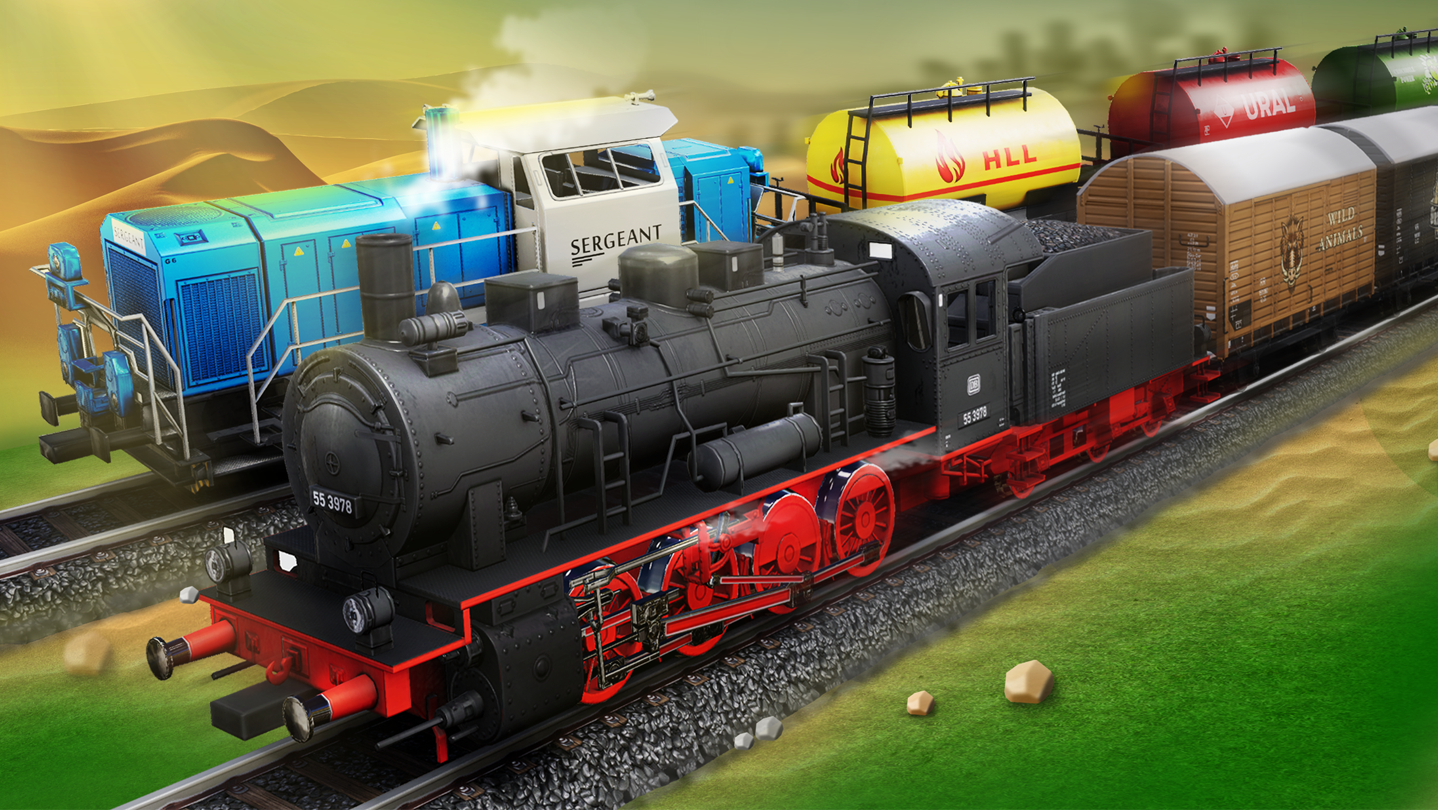 You can start with different empty terrain types and populate them with beautiful 3D models of engines, wagons, buildings, plants etc.