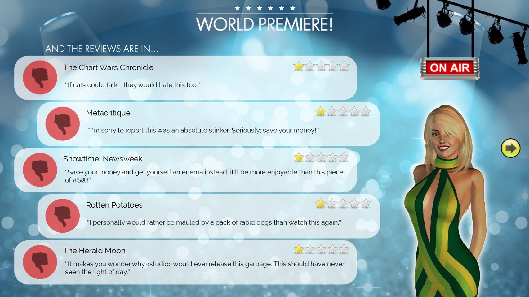 • The in-game Editor allows you to easily customise almost every facet of the game - from actors/directors/producers to film titles, studios and even critic reviews (plus much more!)