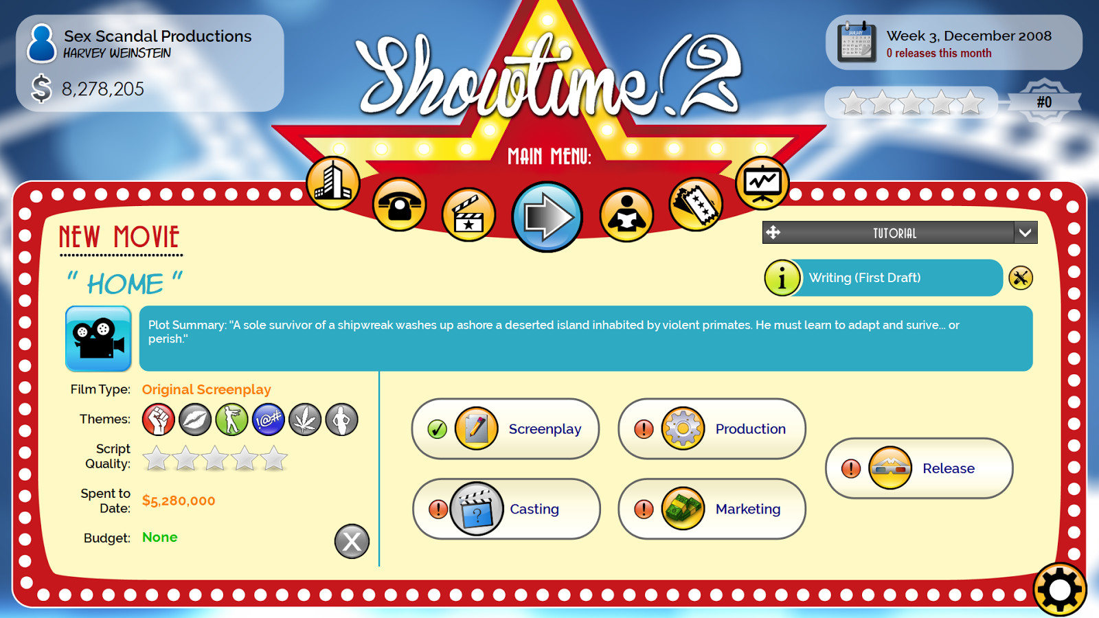 "Showtime! 2" let's you run your very own movie studio! Build your studio from the ground up and compete against rival studios to create movies your audiences want to see and develop new technology to stay relevant in the film industry.