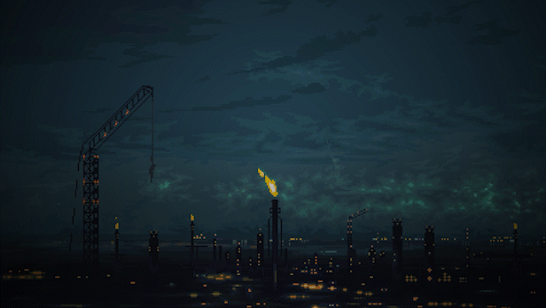 NORCO’s painterly and cinematic pixel art draws the player into its quotidian sci-fi world of disappearing swamplands, labyrinthine oil refineries, and other landscapes inspired by the titular town of Norco, Louisiana and other parts of Greater New Orleans. Sink into the rich field recordings and sound design by fmAura and a driving, post-industrial electronic score from Gewgawly I.