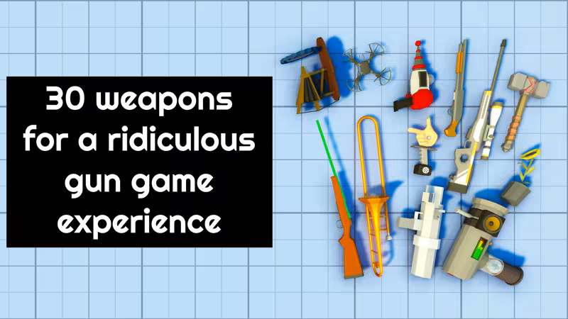 And 30+ ridiculous guns to kill your friends with! What's that? You're wondering why there is a Trombone, or a flower? Guess you'll just have to play the game to find out what they do!
