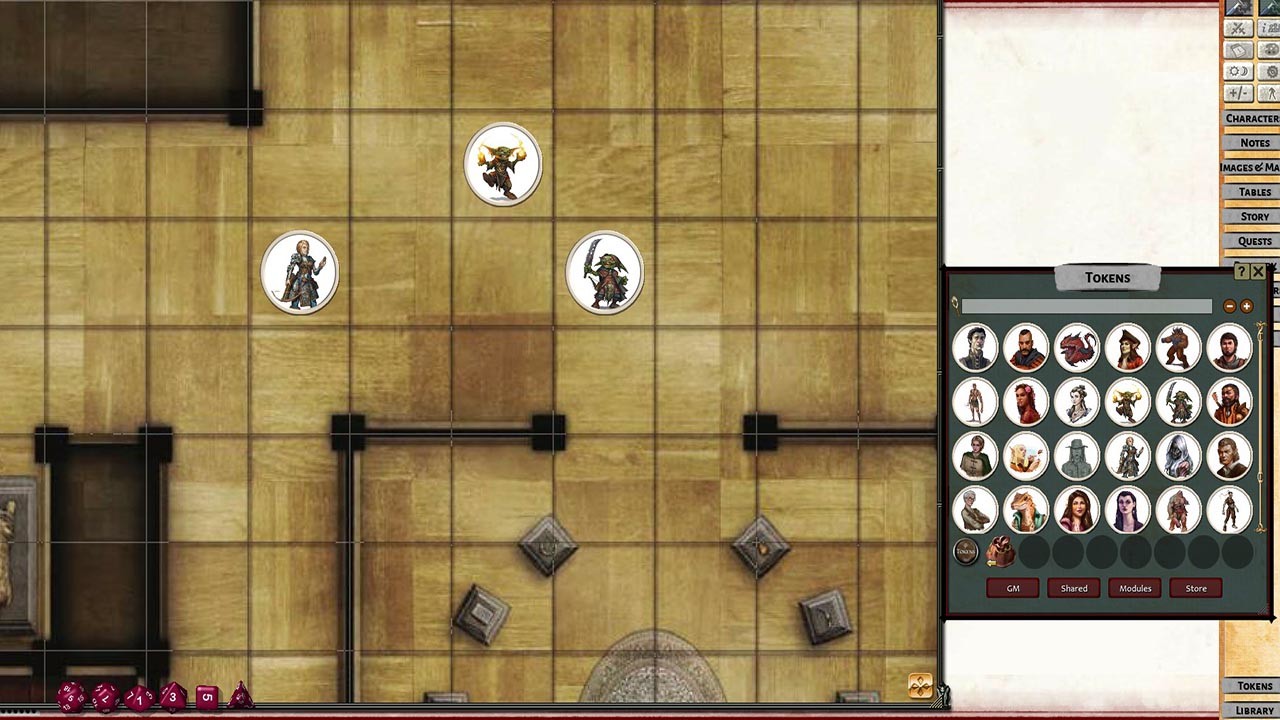• Tokens for each encounter are all pre-placed in starting locations on the map. You can edit these on the fly.