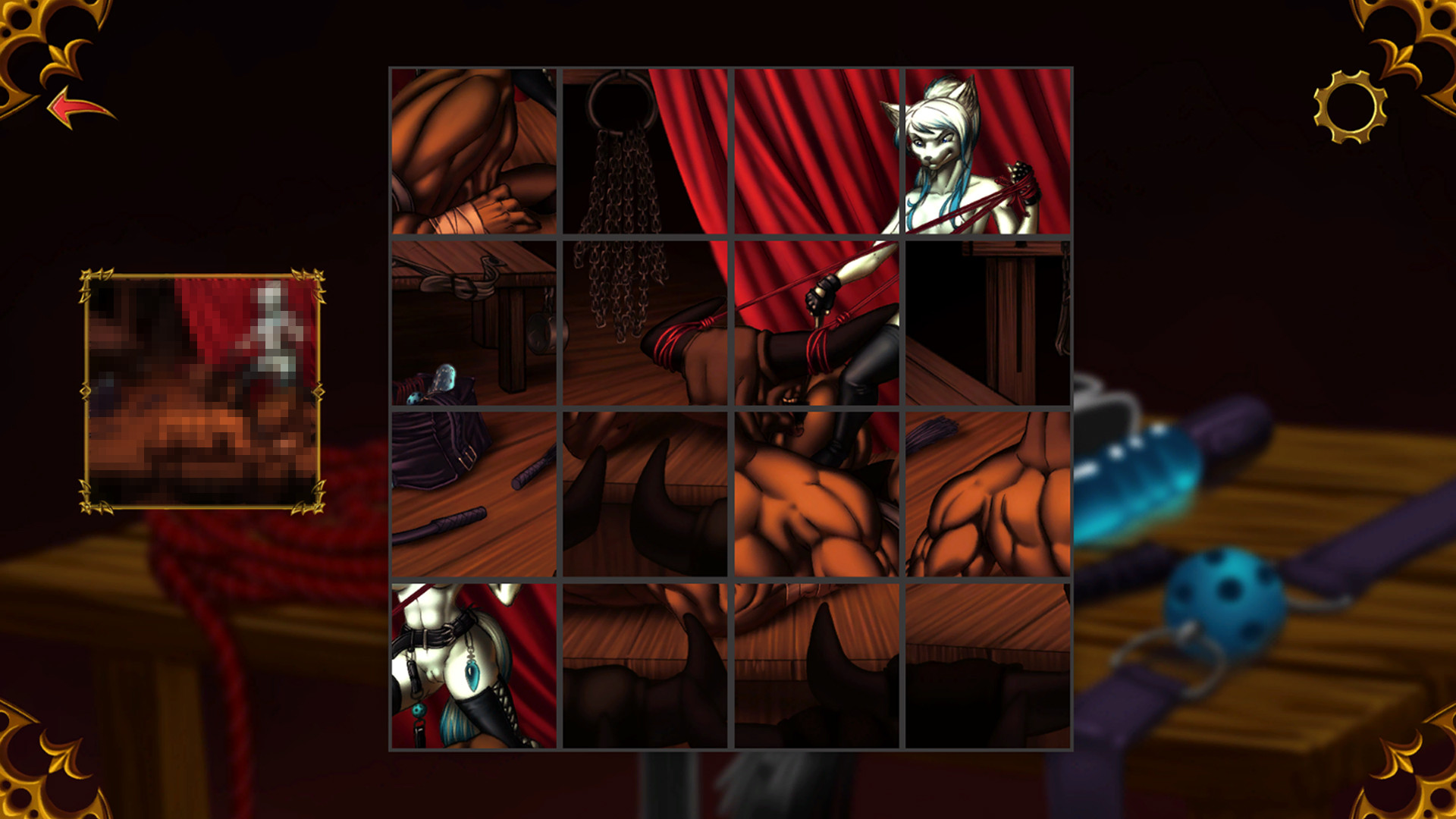 Unscramble the tiles by swapping them around and Follow a dominatrix performance. Experience a BDSM furry story inspired by the classic Girl and Goblin. Can you resist Trix's session?