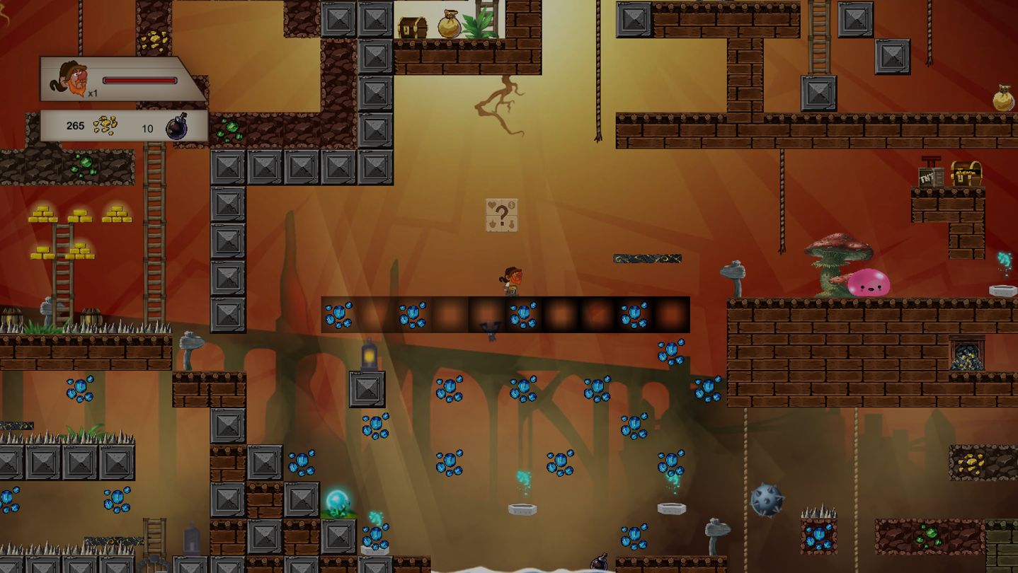 • Locations! - earth, ice and clay mine. These are extensive stages that you must discover and comb in search of passages to their further parts. Explore them and destroy fragments susceptible to damage. Find treasures and HP drinks. Each environment delivers a specific type of danger, and new inhabitants to encounter.
