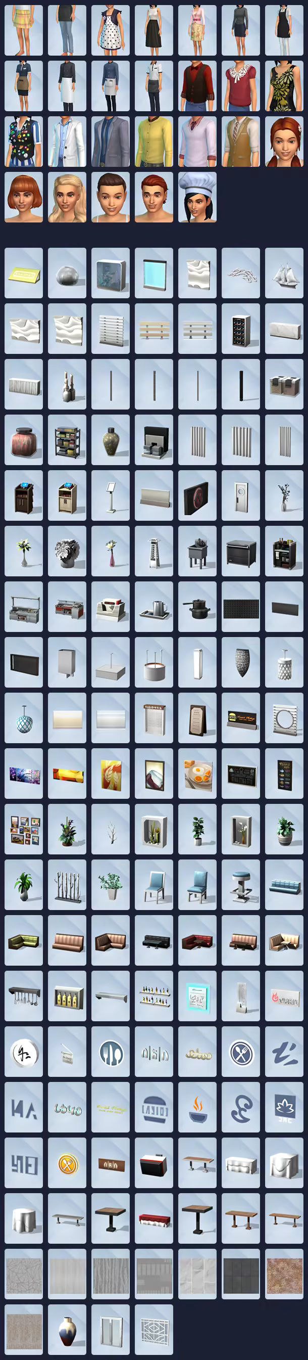 Create unique restaurants. Classic diner or upscale Italian bistro? Build your dream restaurant from the ground up or customize pre-made restaurants using new objects and décor. Personalize your space with comfy booth seating, unique signage, or outdoor seating for al fresco fun.