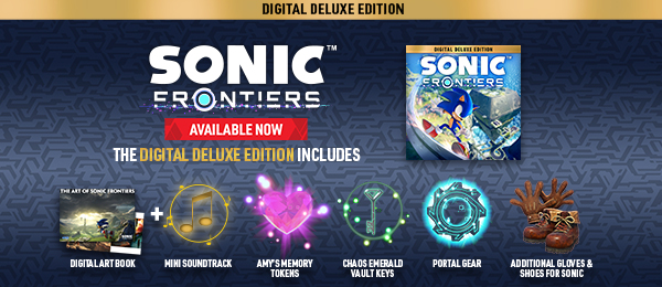 The Digital Deluxe Edition comes with the Explorer's Treasure Box, which contains useful items for your adventure: Amy's Memory Tokens, a Portal Gear, Chaos Emerald Vault Keys, Additional Gloves & Shoes for Sonic, and a Digital Art Book with a 25-track Digital Mini Soundtrack.