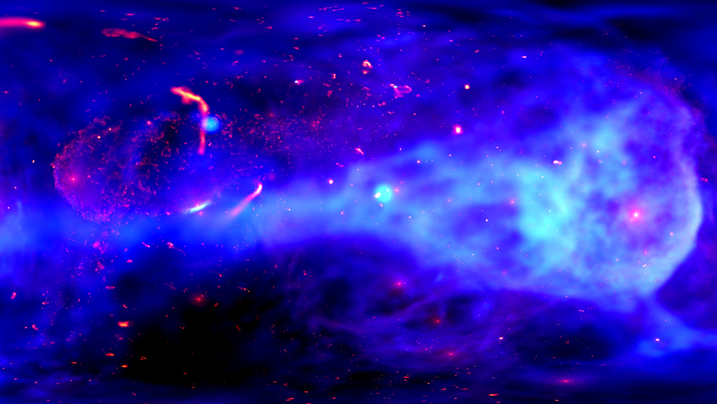 In Galactic Center VR, fly around the few-light-year region around Sagittarius A*, seeing the orbiting stars, their stellar winds, and the X-rays they emit. Or scale down the simulation so everything fits within your VR play area, allowing you to walk around the center of our galaxy. View the whole simulation in stellar winds only, X-rays only, or both, as well as check out the contribution from just one stellar wind at a time. There is also a tutorial explaining more about the simulation, which provides non-astronomers some pertinent background information.