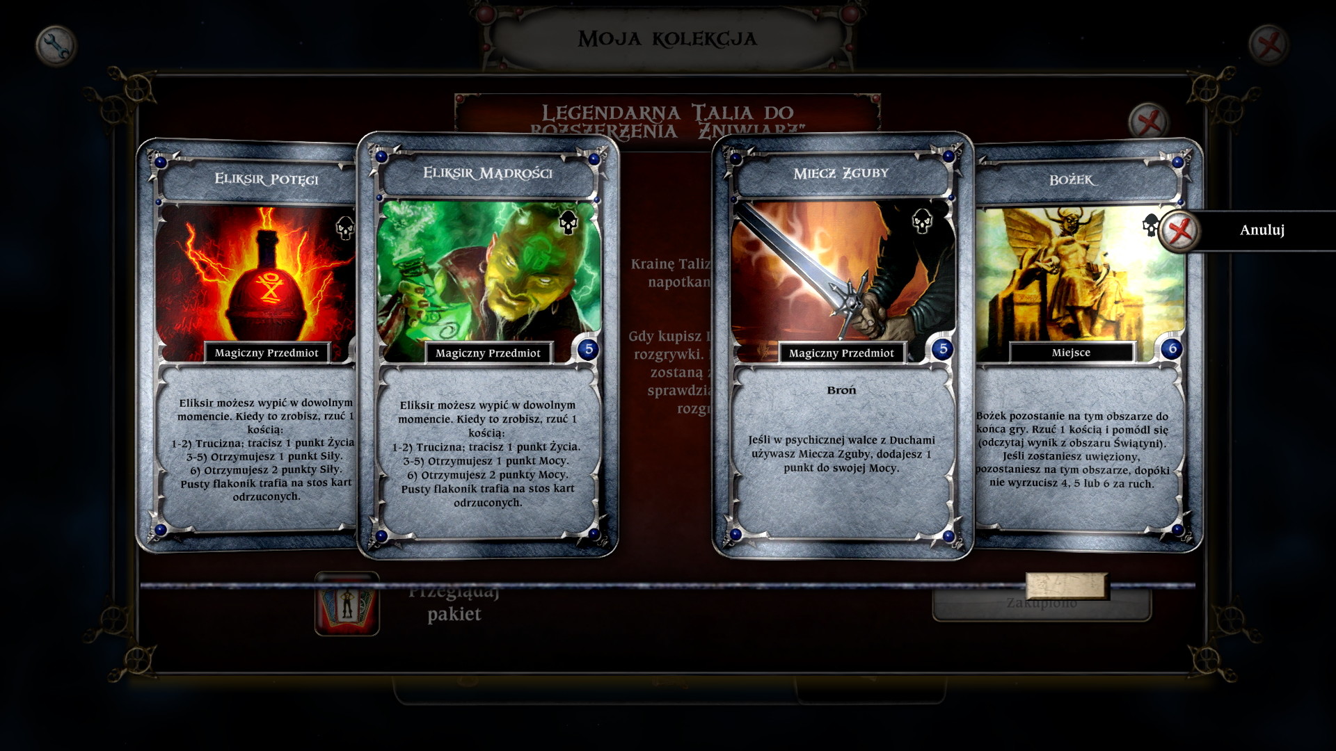 Zakupiona Legendarna Talia zasili Twoją kolekcję „Talisman: Digital Edition” i będzie dostępna we wszystkich trybach rozgrywki. Pamiętaj, że oferowana talia nie jest dostępna w ramach przepustki sezonowej „Talisman: Digital Edition”.