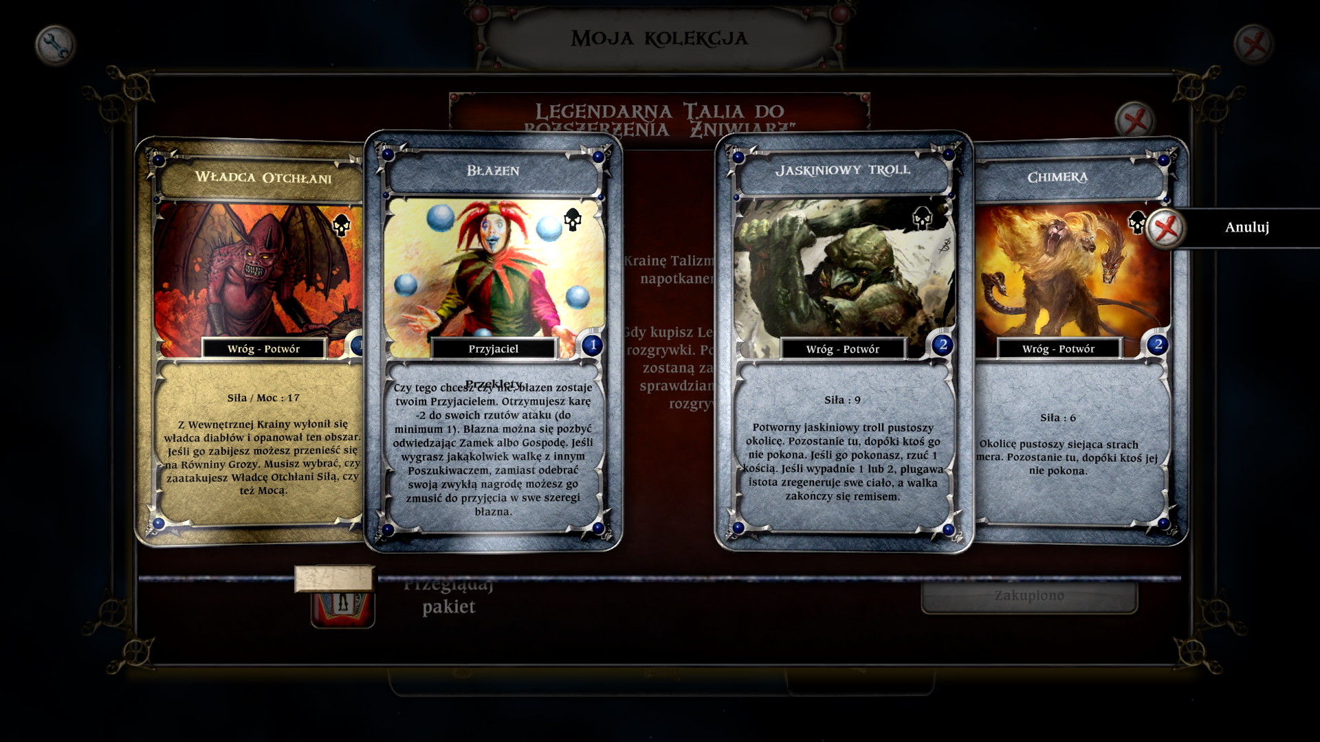 Zakupiona Legendarna Talia zasili Twoją kolekcję „Talisman: Digital Edition” i będzie dostępna we wszystkich trybach rozgrywki. Pamiętaj, że oferowana talia nie jest dostępna w ramach przepustki sezonowej „Talisman: Digital Edition”.