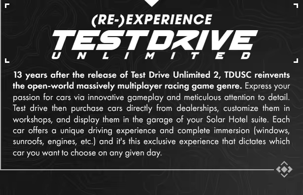 TDUSC is a lifestyle and social experience that redefines what an open-world racing game can be. Explore a fully recreated Hong Kong Island. Take to the road behind the wheel of exceptional cars and live the ultimate life of luxury.