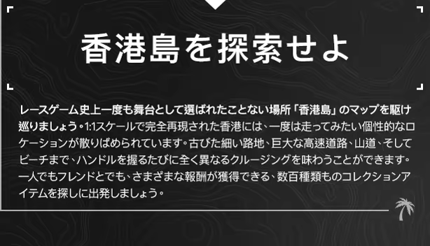 TDUSCはオープンワールド・レーシングゲームの何たるかを再定義する、ライフスタイルとソーシャル体験です。完全再現された香港島を駆け巡りましょう。名車のハンドルを握って道路を走り、至高の贅沢な暮らしをご体験あれ。