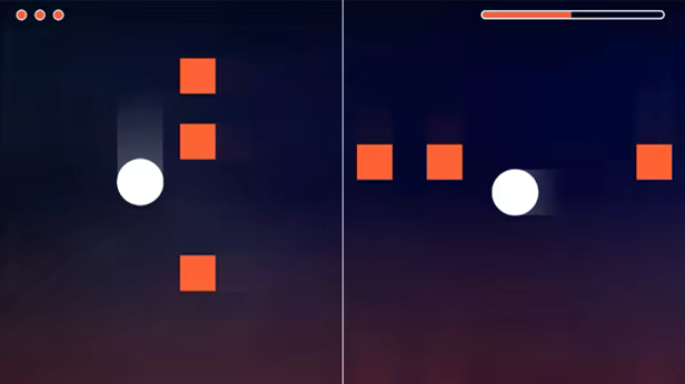 The game is so easy to control but moving the 2 circles at the same time by moving the circle horizontally on the left and vertically on the right, might be challenging as you play through the game, the incoming squares are going to move faster.