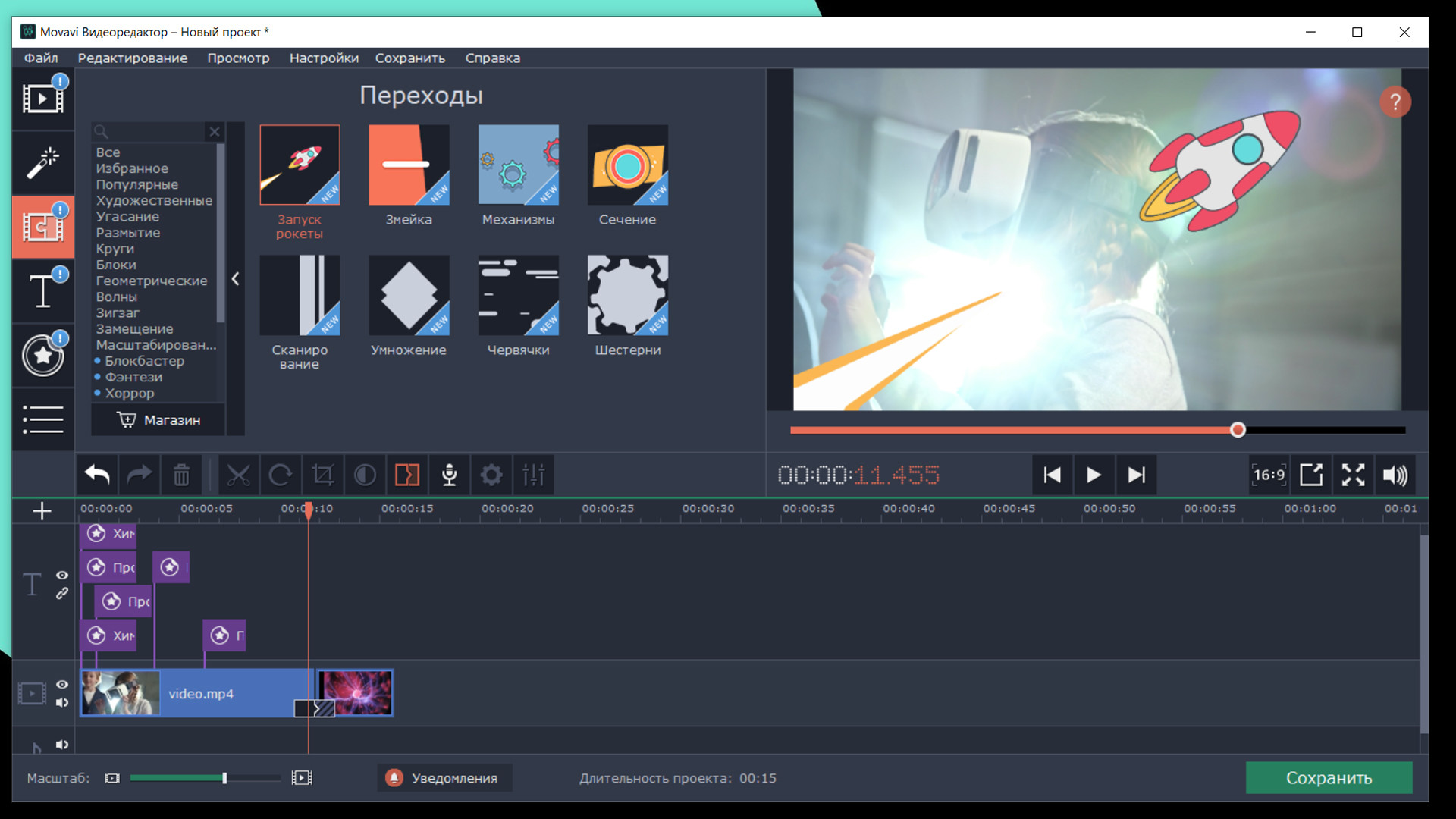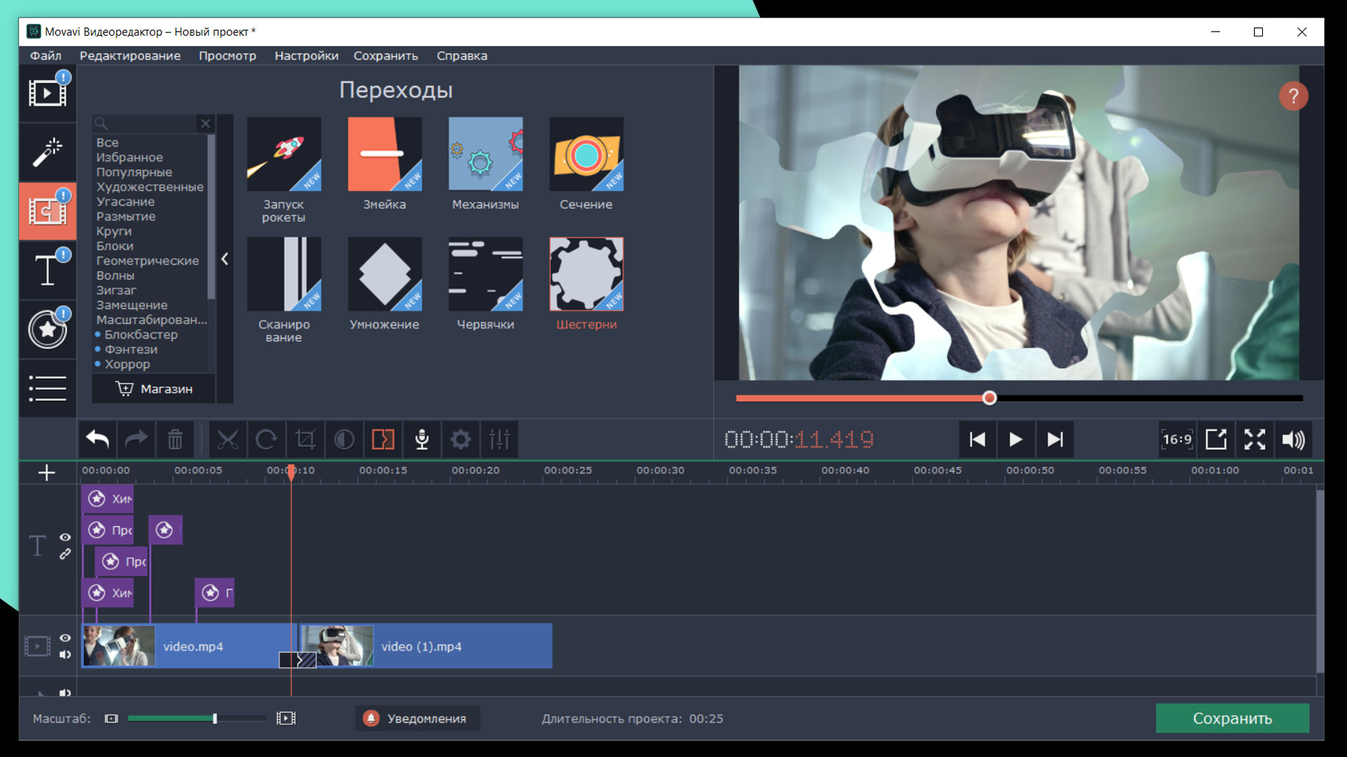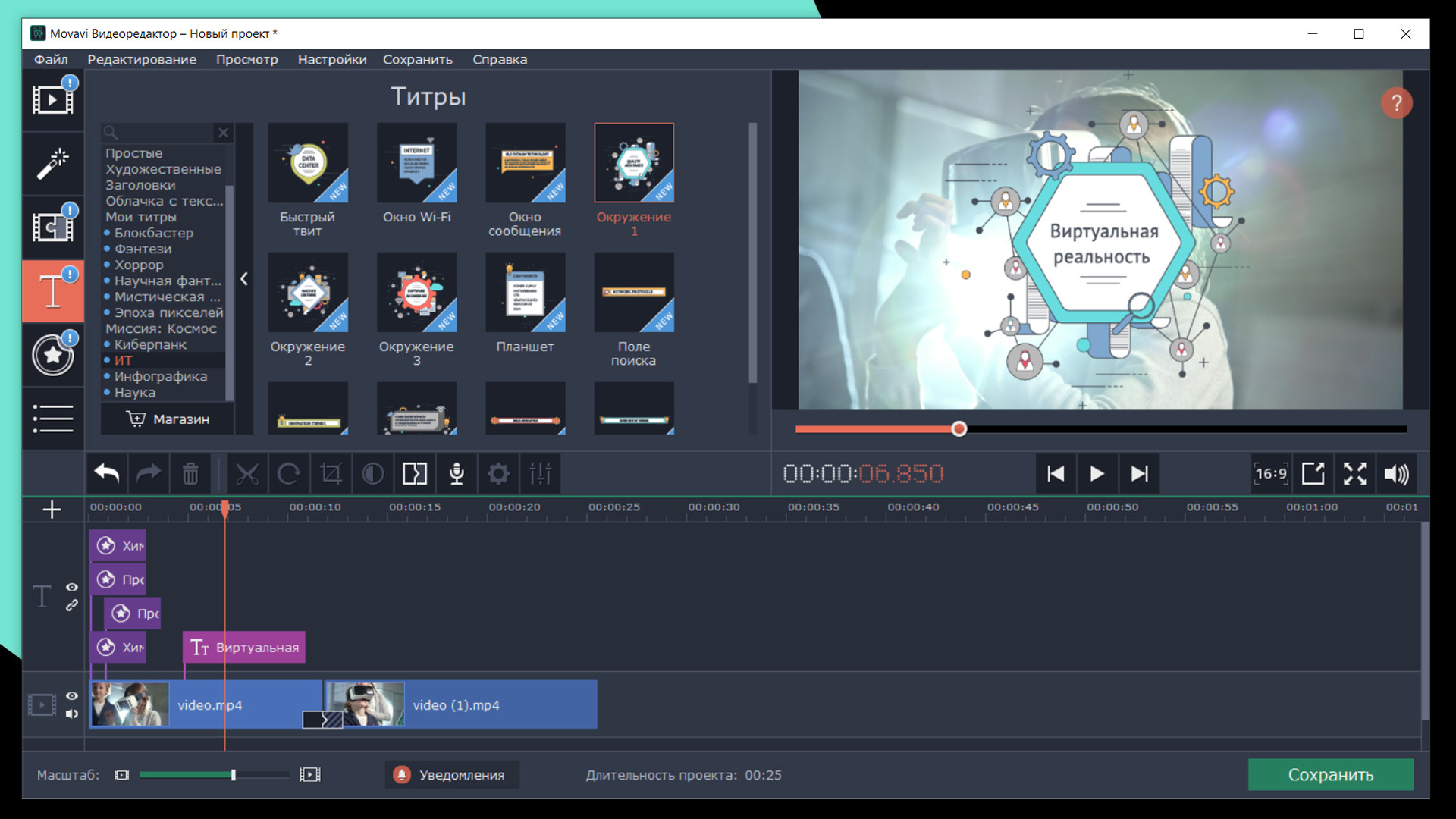 Будущее наступило. Добавляйте динамичные переходы и современные фоны в проекты про инновационные тренды. Анимированные стикеры сделают инструкции для пользователей нагляднее и удобнее. Улучшайте видео с помощью винтажных титров и уникальных мелодий.