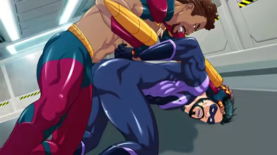 A gay superhero visual novel! The Lone Wolf Mister Versatile thinks super teams are a pain in the ass, but four super-hotties have decided they want to watch his back anyway! Date a villain, a rookie, a symbiote, and a superman-ish alien. Loaded with explicit CGs.